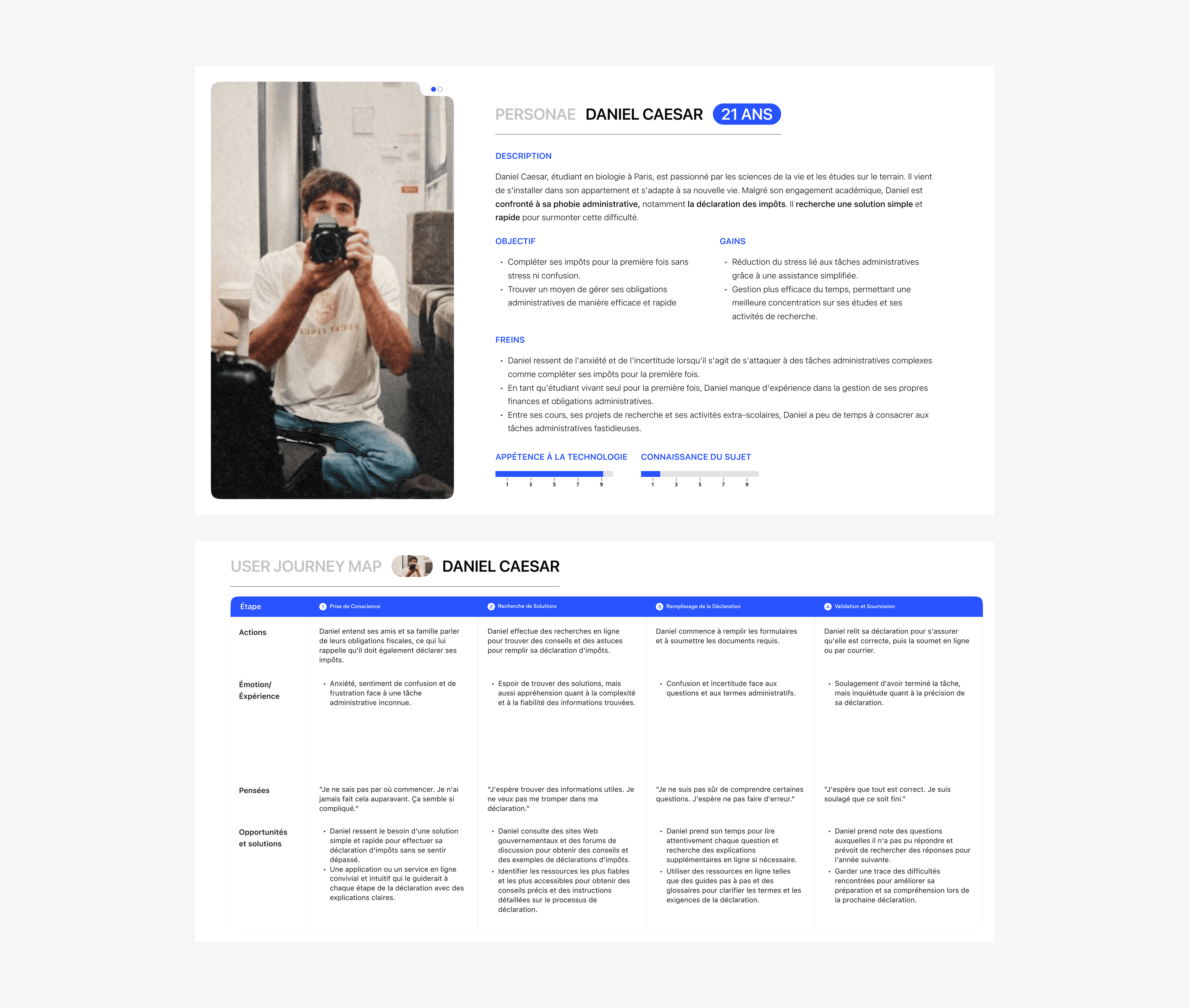 J’ai défini un persona, puis construit une journée type afin d’analyser les points de frustration et les difficultés rencontrées par les utilisateurs.